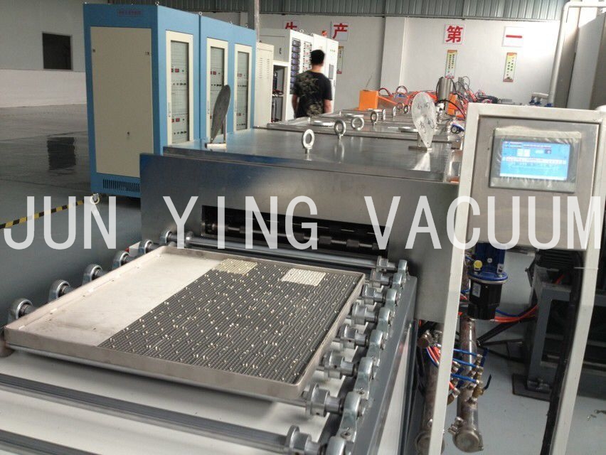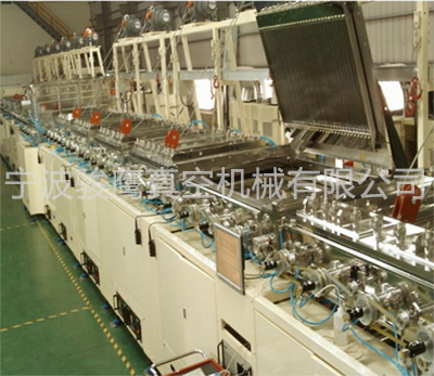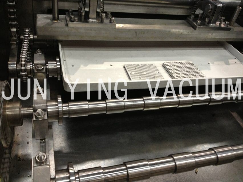 2.進(jìn)料區(qū):可放置625mmχ505 mm料盤二十盤,一盤Max 35個治具,一次入料Max可達(dá)700個治具,自動送料盤結(jié)構(gòu)配置一個KY- 400高真空分子泵或10 FCryo pump及採用Rotary pump + Booster之低真空pump組合,抽氣速率可達(dá)10000 L/hr